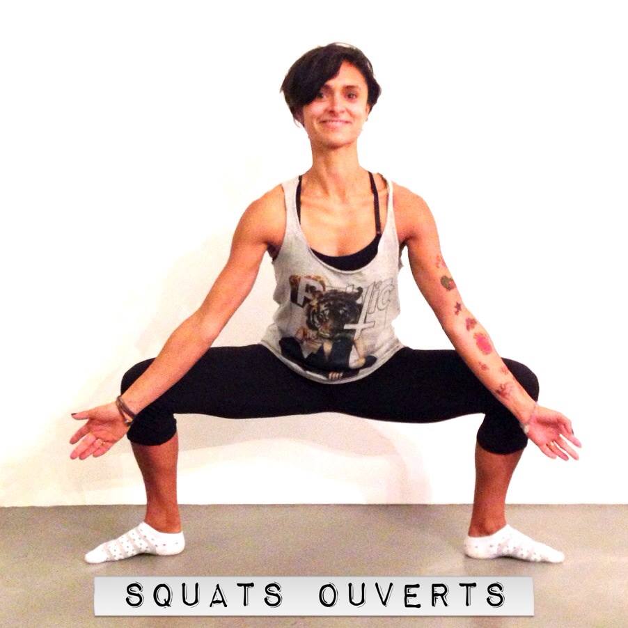 Sur cette vidéo, on peut voir qu’il est difficile pour Annah de faire ses squats en gardant le buste droit. C’est à cause d’un souci ligamentaire au niveau des jambes et du talon d’Achille. Aussi, si c’est également votre cas, voici ci dessous une variante de squats qui se réalisent les jambes ouvertes.