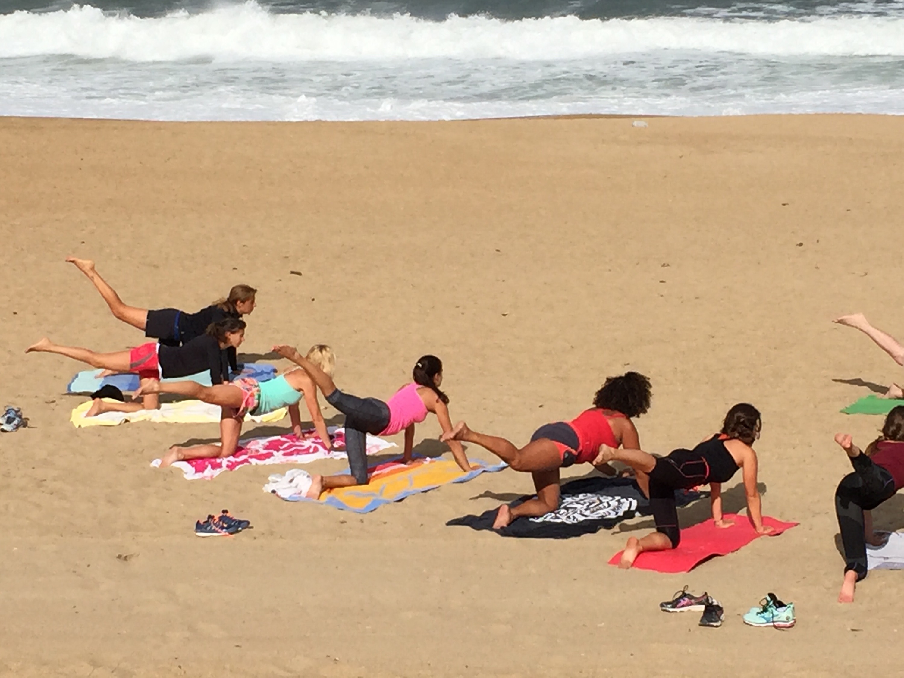 Nous avons réalisé différentes postures et étirements face à l’océan, utilisant tantôt des exercices de gainage et tantôt des exercices d’étirement.