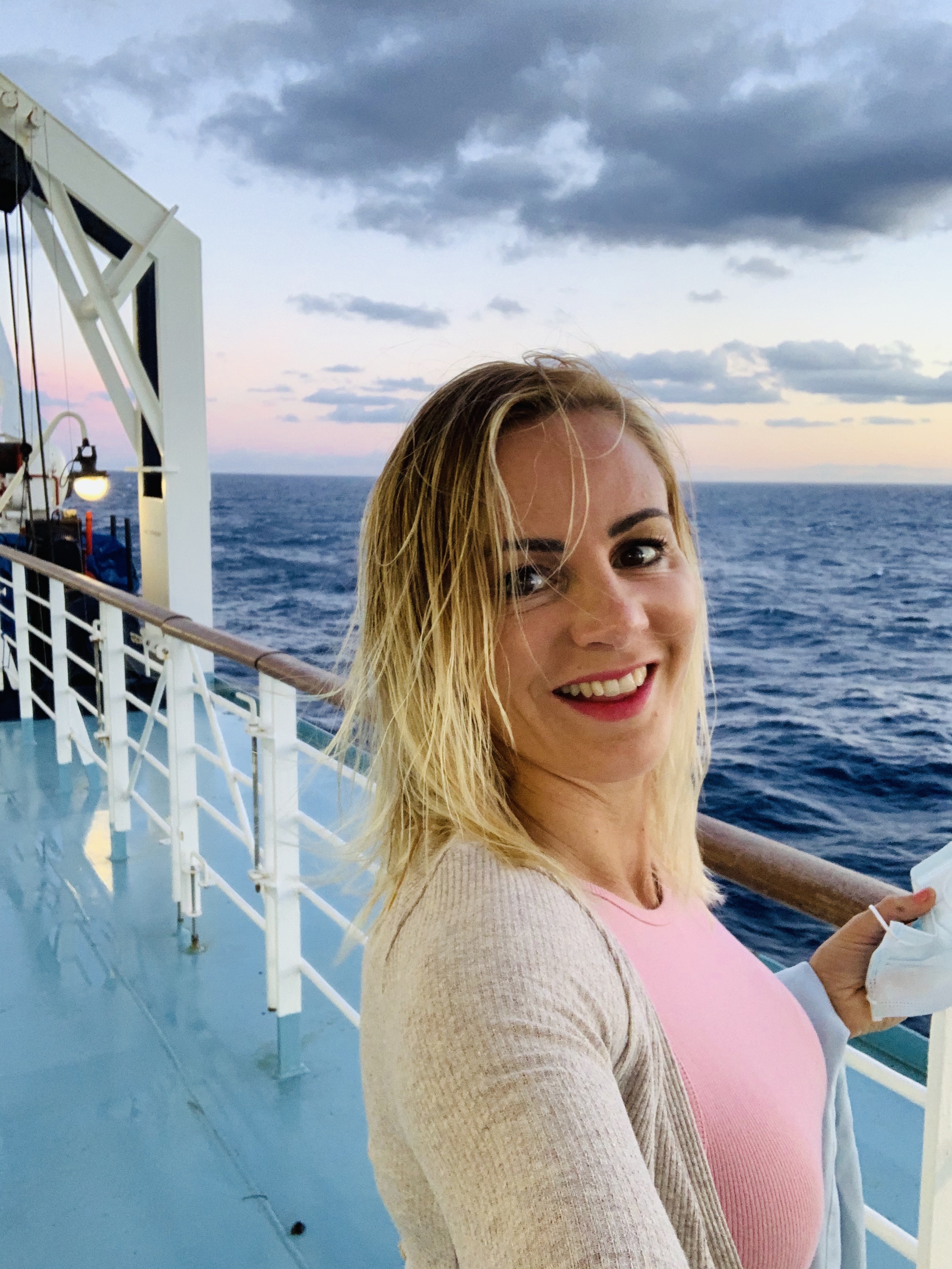 Nous arrivons au port d’Alcudia à Majorque après une belle nuit en mer . Je suis excitée de voir le Sunset sur cette immensité que je ne dors plus depuis 6h du matin et que je me rends sur le pont pour voir cette beauté . Puis nous admirons le soleil sortir sur l’eau bien au chaud sous la couette devant notre grand hublot.